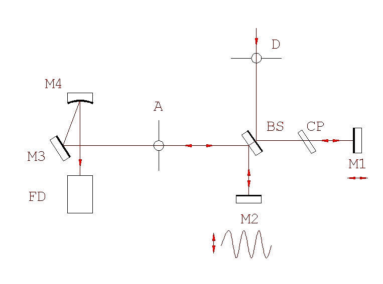 adjustable optical delay is inserted into one of the arms. The two beams are