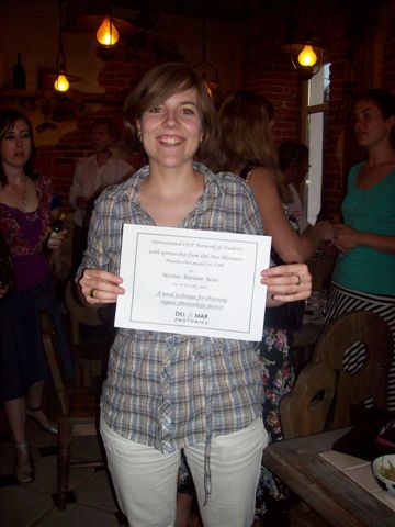Marina Mariano Juste from the ICFO - Institut de Ciències Fotòniques, Barcelona, Spain with the certificate of the Best Talk Award sponsored by Del Mar Photonics.