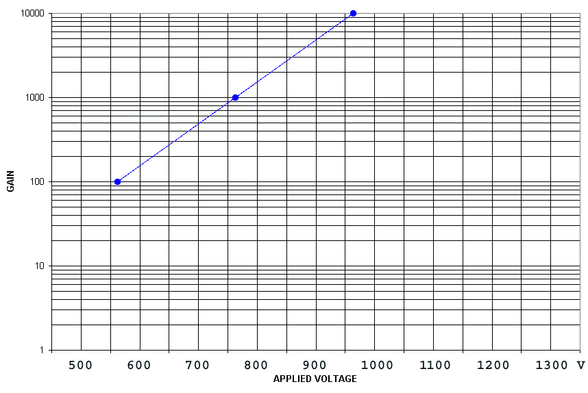 | Graph shows typical Gain versus Applied Voltage dependence. It can be used for