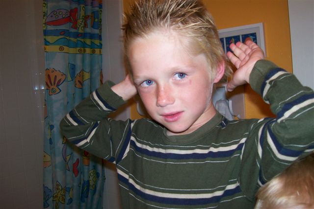 March 3, 2007: Eugene made a spiky hair and looking in the mirror said "Oh, baby!"