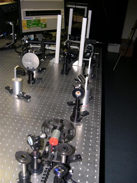 Among these setups, one is a spectroscopic bench used to characterize materials in the 100 GHz to 3.5 THz spectral range.  This last one is synchronized with two other Optical Parametric Amplifiers TOPAS which deliver tunable optical beams in between 240 nm and 11µm. Thus this system makes possible to carry on optical pump / THz probe experiments. Its originality is the use of tunable femtosecond laser light that excite materials and measure their response in the THz domain frequencies.